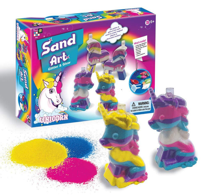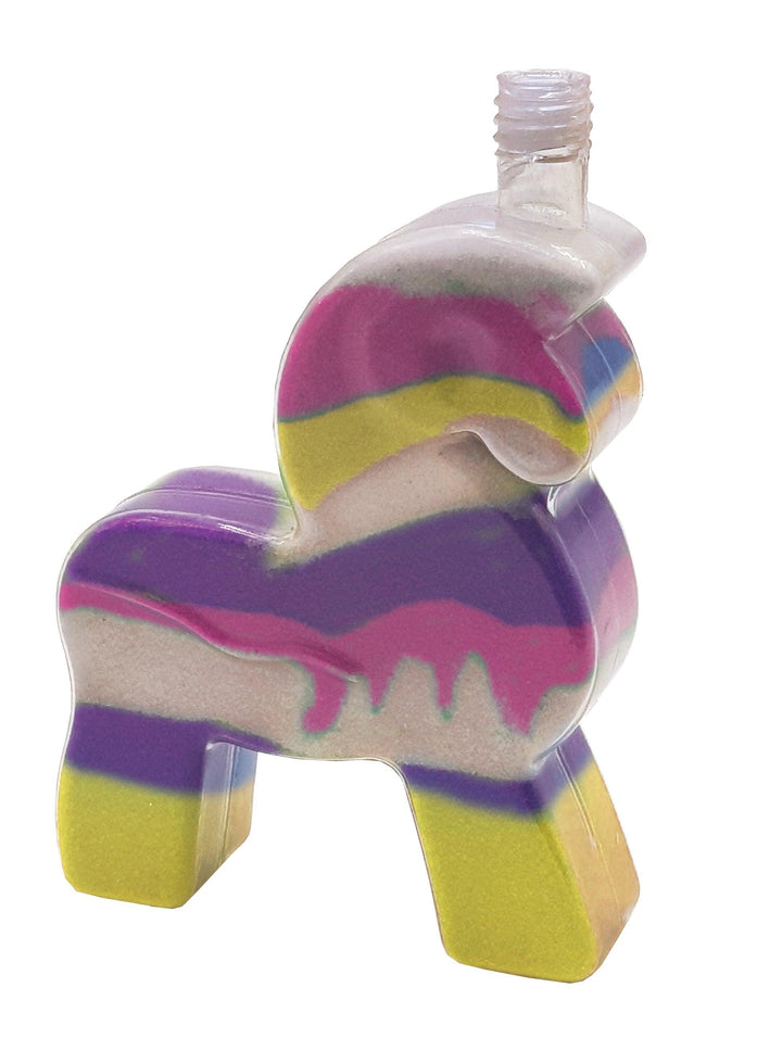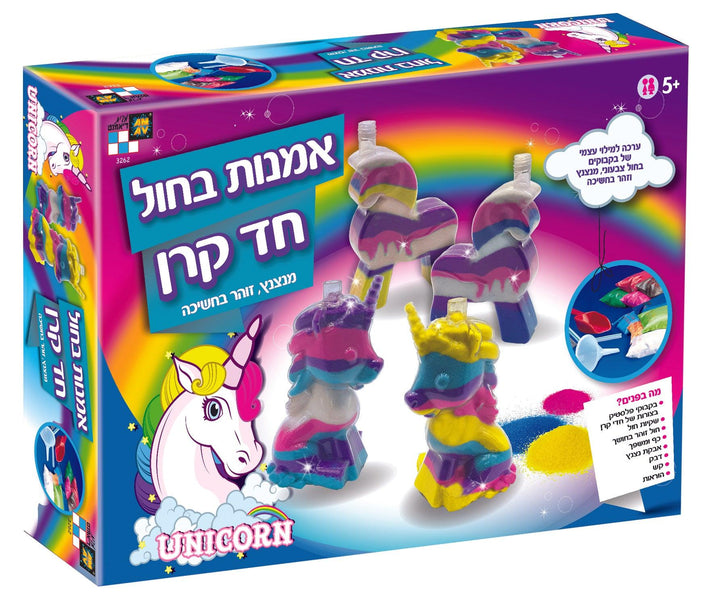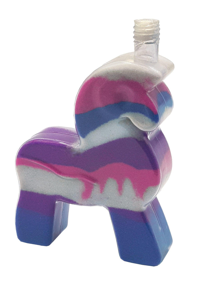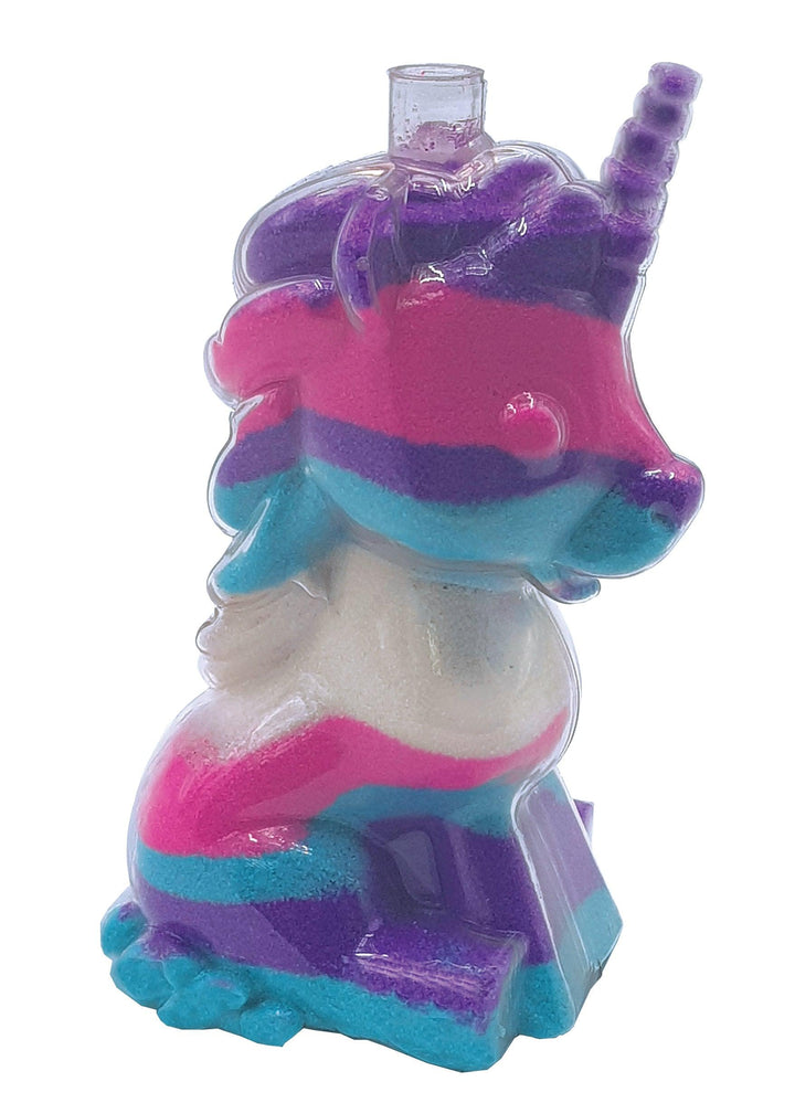 אומנות בחול חד קרן. מנצנץ, זוהר בחשיכה. ערכה למילוי עצמי של בקבוקים בחול צבעוני, מנצנץ, זוהר בחושךלגילאי 6 ומעלה.