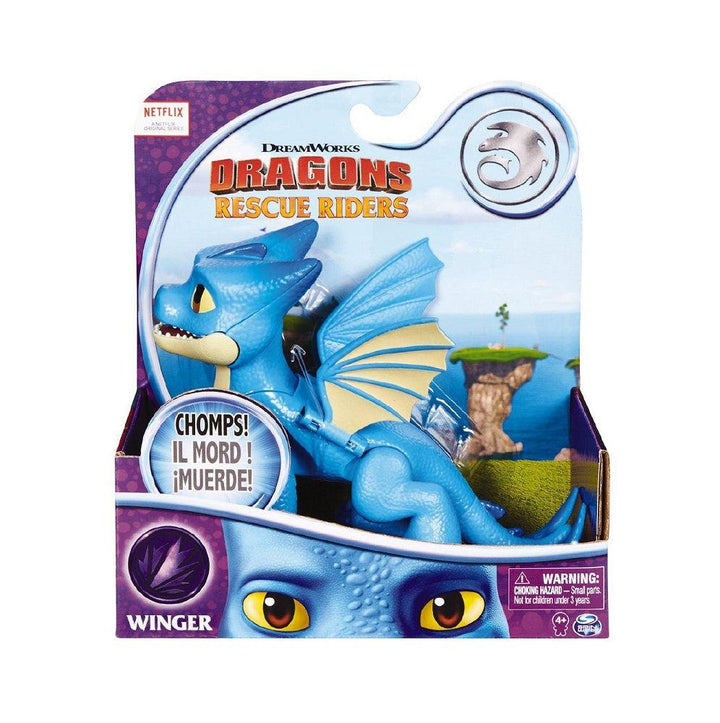 עופו להרפתקאות עם דמויות סדרת דרגונס! לכל דמות תכונה מיוחדת המופעלת בקלות! ווינגר - לחצו על גבו, יניף את כנפיו ויפתח את הפה מתאים לגילאי 4 ומעלה מבית SPIN MASTER העולמית Dragons - Legends Evolved - Winger