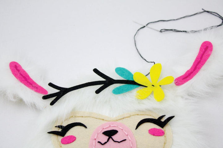 פרווה חתוכה בצורת למה, בד חתוך, חומר למילוי כרית, חלקי לבד חתוכים, חוטים, מחט, אבני חן נדבקות,