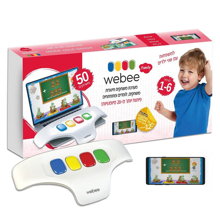 מערכת Webee Family מתאימה למשפחות עם שני ילדים בגילאי 1-6. המערכת מכילה 50 משחקים חינוכיים + 12 משחקים באפליקציית Webee To Go שעוזרים לילדים לפתח מגוון רחב של מיומנויות החל מלימוד צבעים, צורות וחיות ועד הכנה לכיתה א'.