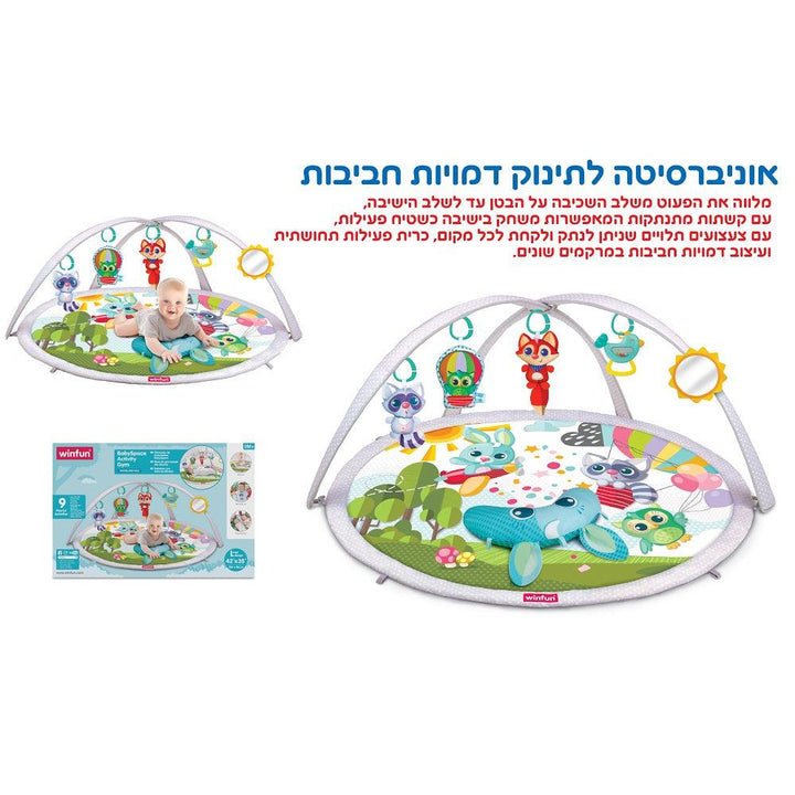 מלווה את הפעוט משלב השכיבה על הבטן ועד לשלב הישיבה, עם קשתות מתנתקות המאפשרות משחק בישיבה כשטיח פעילות, עם צעצועים תלויים שניתן לנתק ולקחת לכל מקום, כרית פעילות תחושתית ועיצוב דמויות חביבות במרקמים שונים. 106X88 ס"מ לגילאי 0 חודשים ומעלה