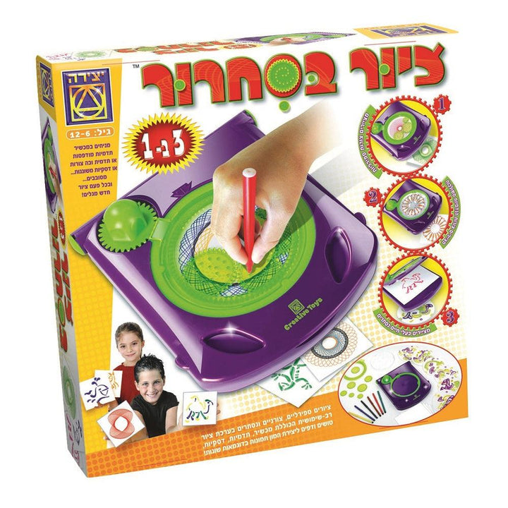 ציוריםספירליים, צורניים ונסתרים בערכת ציור רב שימושית הכוללת מכשיר, תדמיות, דיסקיות, טושים ודפים ליצירת המון תמונות בדוגמאות שונות!